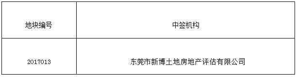 东莞市国土资源局1宗国有土地使用权评估业务进行公开抽签,现将抽签结果公告如下: